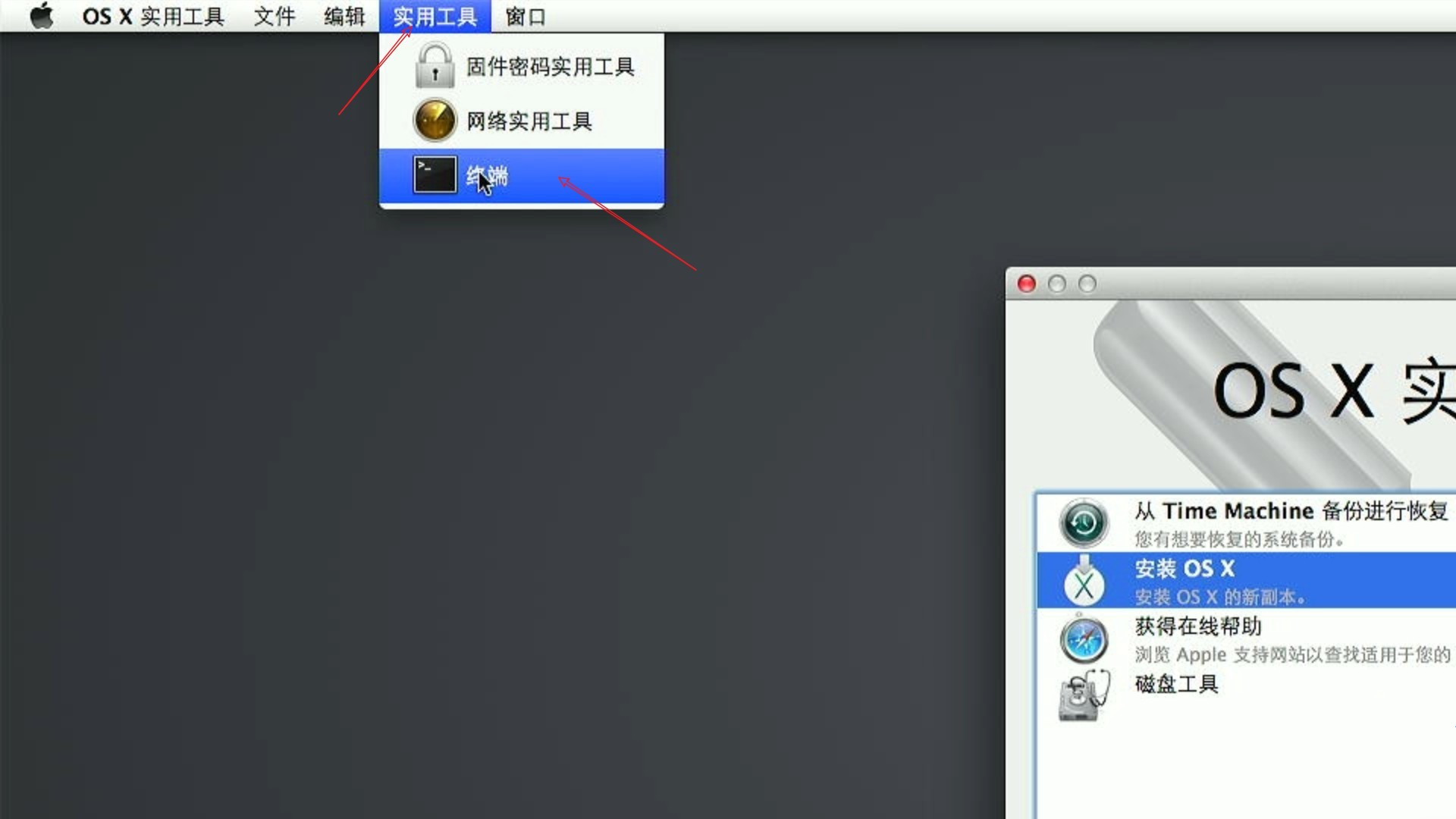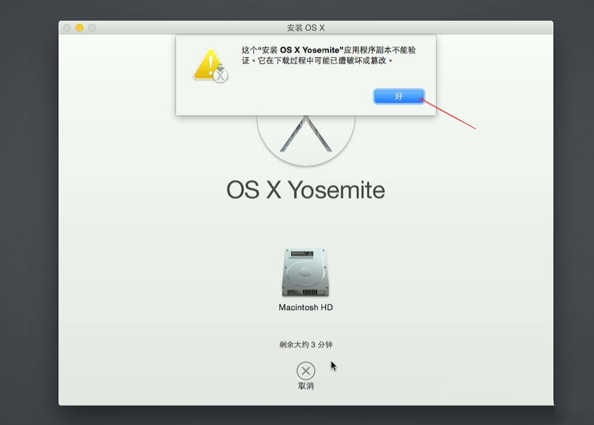 修改完毕后退出终端,继续安装苹果系统