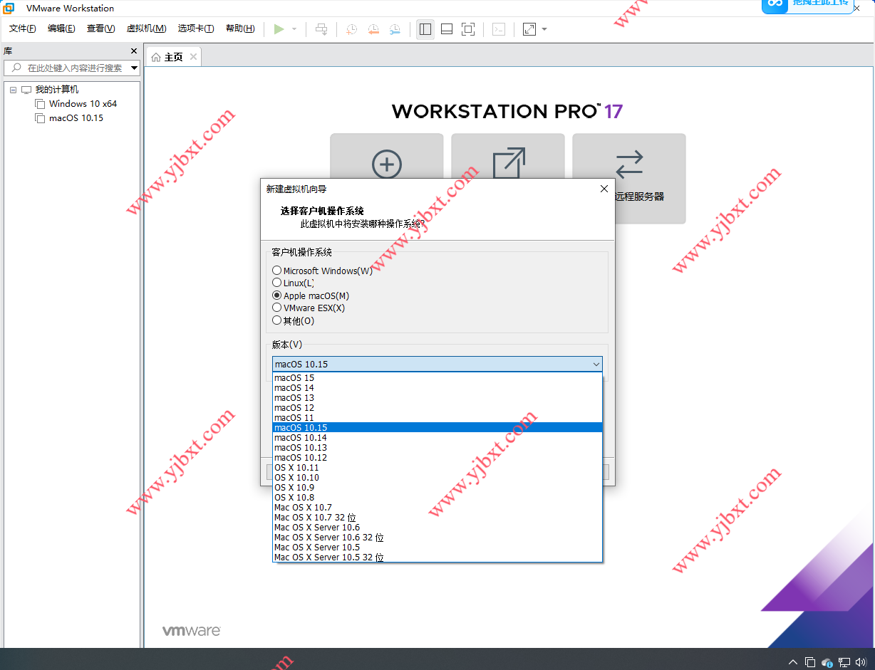 2、等它运行完毕后会自动关闭窗口,接下来在用 VMware 创建虚拟机的时候,就可以选择 Mac OS X 系统了,各种版本都有,如下图所示: