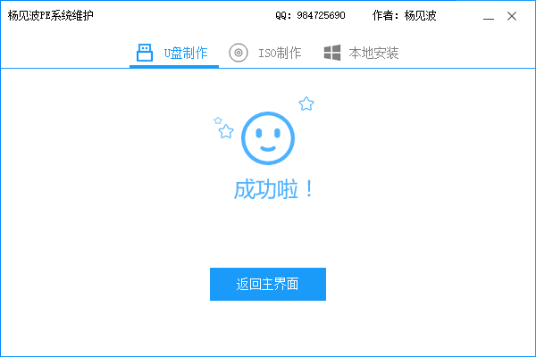 此时PE启动盘已经制作完毕,点击“返回主界面”并关闭软件准备好重启电脑安装系统