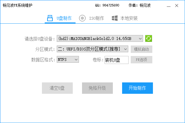 下载完毕后,打开杨见波PE维护系统并且将U盘插入电脑