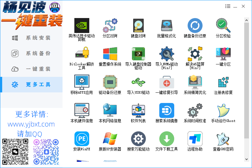 【更多的扩展工具】我们是不单单开发一款系统备份恢复工具,我们将自主开发的常用工具集成到扩展工具中,一款工具即可替代部分软件的大部分功能!