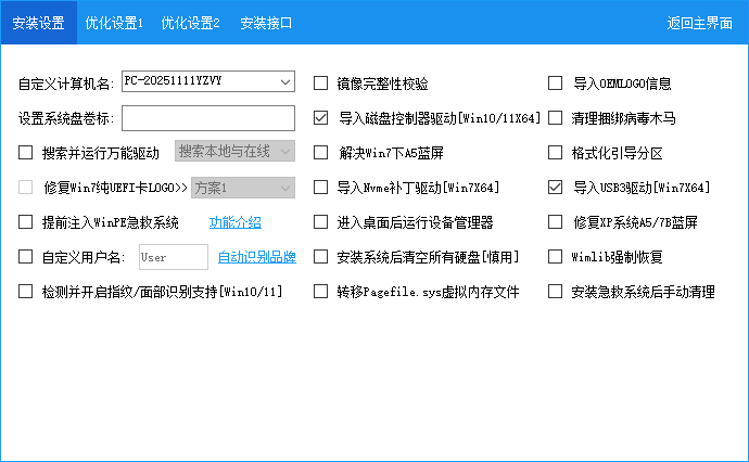 自带USB3.X/11代-14代酷睿VMD驱动/Nvme驱动补丁,还原时可选择注入;